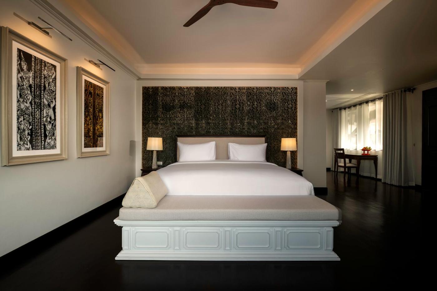 Premier Double Room. Boasting views of Mount Phou Si, the spacious room is elegantly decorated and furnished with genuine teak. The private bathroom comes with lemon grass scented amenities. ;