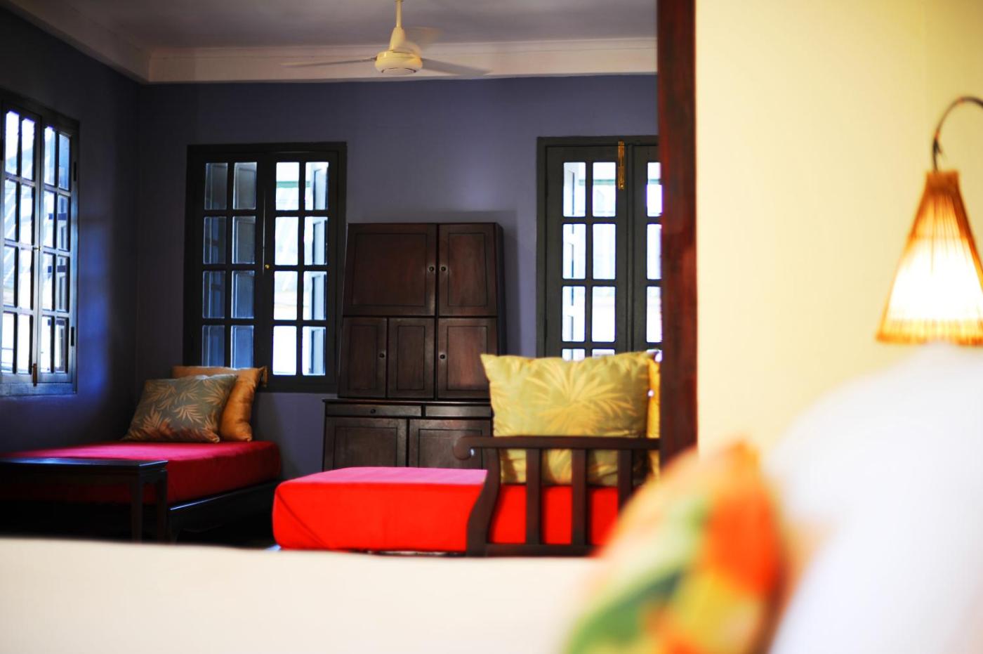 Double or Twin Room with Garden View. Located on the ground and first floors, the double rooms open up to the garden courtyard. Offering approximately 15-sqm of space, the rooms come with a shared balcony, a safety deposit box and a refrigerator. The private bathroom includes a walk-in shower and organic toiletries produced from local flowers and herbs. Please note that 2 Frangipani Double Rooms can be joined to suit a familysmall group bookings (based on availability). ;